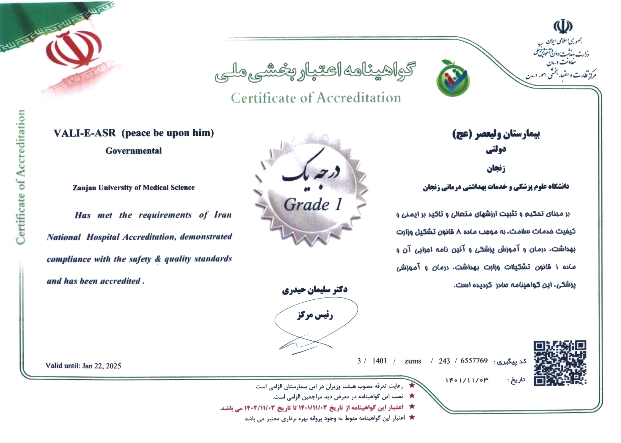 آدرس:زنجان - بالاتر از میدان ولیعصر _ بلوار دکتر شریعتی _ مرکز آموزشی و درمانی حضرت ولیعصر(عج)