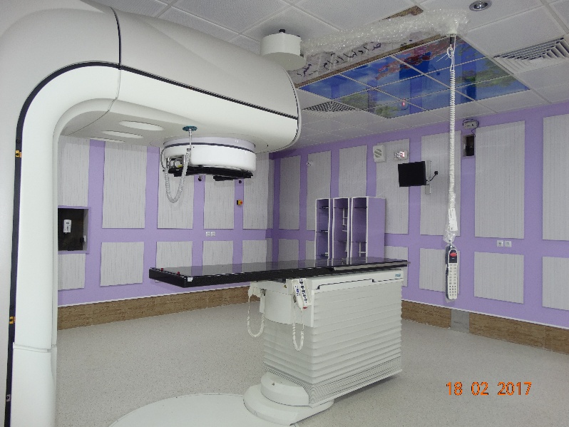 تجهیزات: شتابدهنده خطی زیمنس مدل پریموسMv ۶-۱۵ مجهز به MLC ۱۰۲ لیف، شرکت Lina tech ، مانتیتور علائم حیاتی، الکتروشوک، اکسیژن پرتابل و سانترال، ترالی اورژانس، پالس اکسی متر